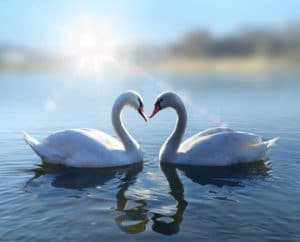 Auch wenn es heutzutage viele andere Formen des Zusammenlebens gibt, sind wir Menschen häufig monogam. In freier Wildbahn bei Tieren gibt es das selten, denn auch evolutionstechnisch gesehen macht Monogamie wenig Sinn. Ein paar Tierarten leben aber ihr Leben lang mit einem Partner, beispielsweise Regenbogenpapagein, Schwäne oder Wölfe.